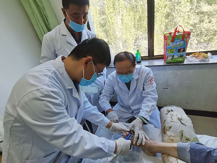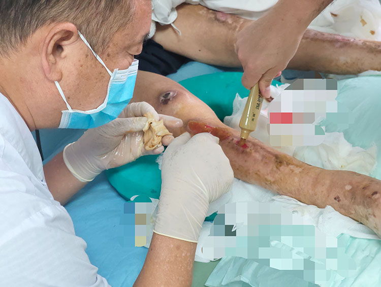 2025年9月25日,《中國燒傷創(chuàng)瘍雜志》常務(wù)編委、燒傷創(chuàng)瘍再生醫(yī)療技術(shù)臨床專家趙瑞慶在朔州市大醫(yī)院會診了四例慢性創(chuàng)面患者。其中1例4級糖足,其余3例冠脈搭橋術(shù)后下肢取血管處感染,足部外傷感染等均為VSD治療患者,討論環(huán)節(jié)趙教授強(qiáng)調(diào)了糖足規(guī)范,程序操作的要求以及簡易負(fù)壓方法壓力管理的重要性。