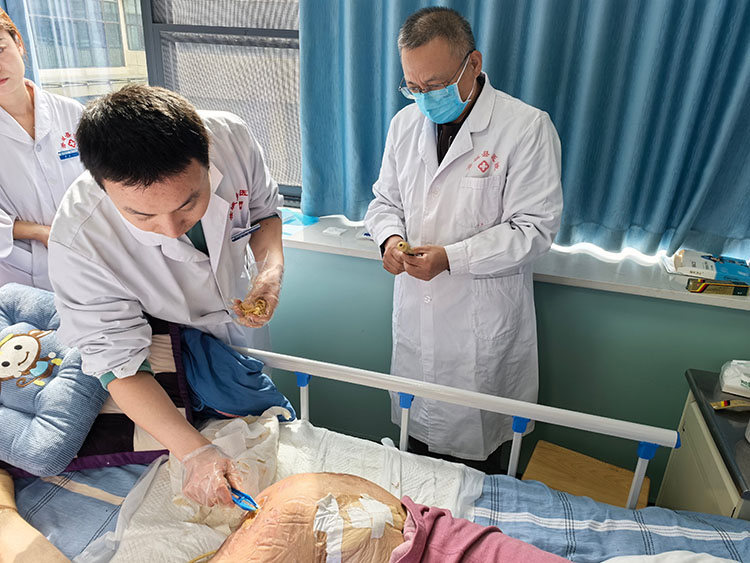 2025年10月15日,《中國燒傷創(chuàng)瘍雜志》總編、北京市中西醫(yī)結(jié)合學(xué)會燒傷專業(yè)委員會副主任委員方進勇,來到商洛市中醫(yī)醫(yī)院會診難愈創(chuàng)面病人,科室張文濤主任及科醫(yī)生、護士長參加。