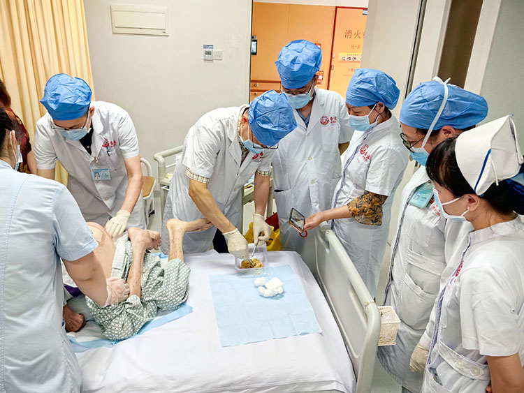 2025年7月1-2日,《中國燒傷創(chuàng)瘍雜志》編委、燒傷創(chuàng)瘍再生醫(yī)療技術(shù)臨床專家張強,先后應(yīng)邀來到桐城市人民醫(yī)院、懷寧縣人民醫(yī)院,張強主任分別對兩例慢性創(chuàng)患者進行了會診,張強主任親自示范再生醫(yī)療技術(shù)換藥流程,強調(diào)了換藥過程中的禁忌和注意事項,并交流了綜合治療方案。再生醫(yī)療技術(shù)是中西醫(yī)結(jié)合創(chuàng)面治療方案的典范,其推廣應(yīng)用將極大造福廣大燒傷及慢創(chuàng)患者!