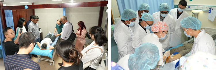 9月17日,代表團(tuán)訪問了湖南省人民醫(yī)院馬王堆院區(qū)康復(fù)醫(yī)學(xué)科??祻?fù)醫(yī)學(xué)科主任蔡華安、學(xué)科建設(shè)辦干事左盼對代表團(tuán)的到訪表示熱烈歡迎??祻?fù)醫(yī)學(xué)科三病區(qū)醫(yī)療組組長黃靚博士系統(tǒng)介紹了再生醫(yī)療技術(shù)在治療壓瘡等慢性難愈合創(chuàng)面中的應(yīng)用優(yōu)勢,并結(jié)合臨床案例,生動(dòng)展示了該項(xiàng)技術(shù)的顯著療效。分享結(jié)束后,代表團(tuán)走進(jìn)康復(fù)醫(yī)學(xué)科病房進(jìn)行實(shí)地參觀。代表團(tuán)成員對科室將創(chuàng)面管理與康復(fù)治療緊密結(jié)合的治療模式深表贊賞,紛紛表示回國后將借鑒這一理念,推動(dòng)創(chuàng)面管理與康復(fù)治療的融合,以提升患者的治療效果與體驗(yàn)。