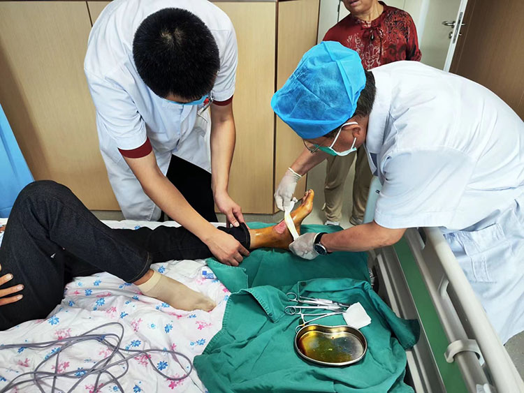 8月28日,《中國燒傷創(chuàng)瘍雜志》常務(wù)編委、燒傷創(chuàng)瘍再生醫(yī)療技術(shù)臨床專家趙瑞慶,在該醫(yī)院會(huì)診了9例慢瘡患者(糖足潰瘍2例,壓瘡4例,會(huì)陰部深筋膜感染1例,臀部深筋膜感染1例,下肢外固定皮膚感染1例),并針對每例患者制定出個(gè)性化的治療方法,受到當(dāng)?shù)蒯t(yī)務(wù)人員及家屬的熱情稱贊。